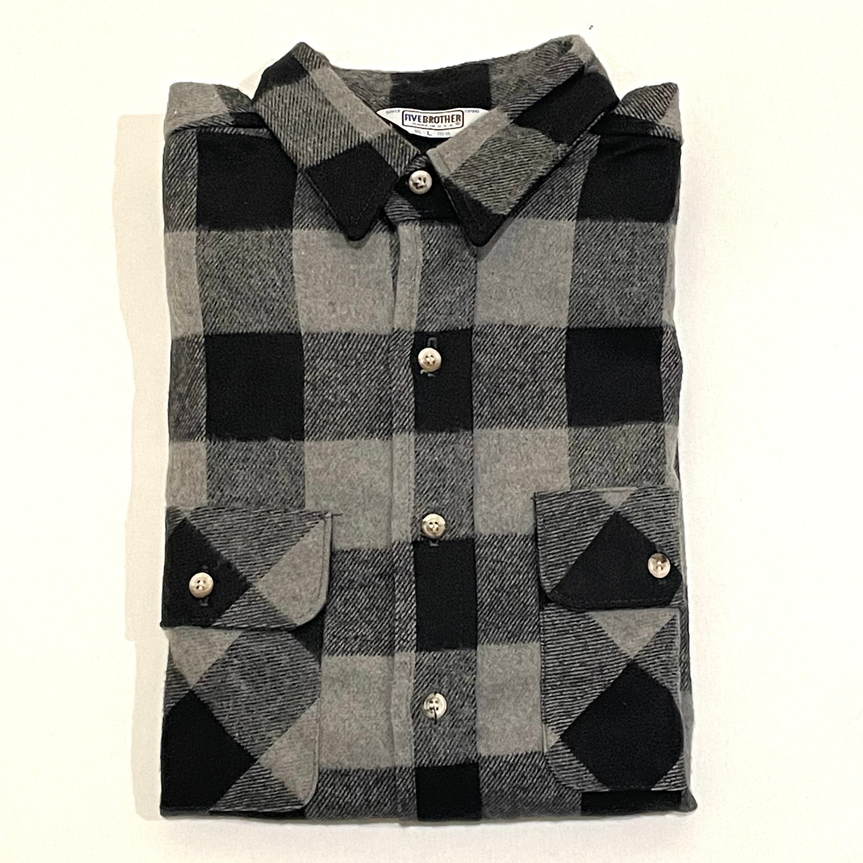 70-80's FIVE BROTHER HEAVY FLANNEL SHIRTS BLACK/GREY DEADSTOCK